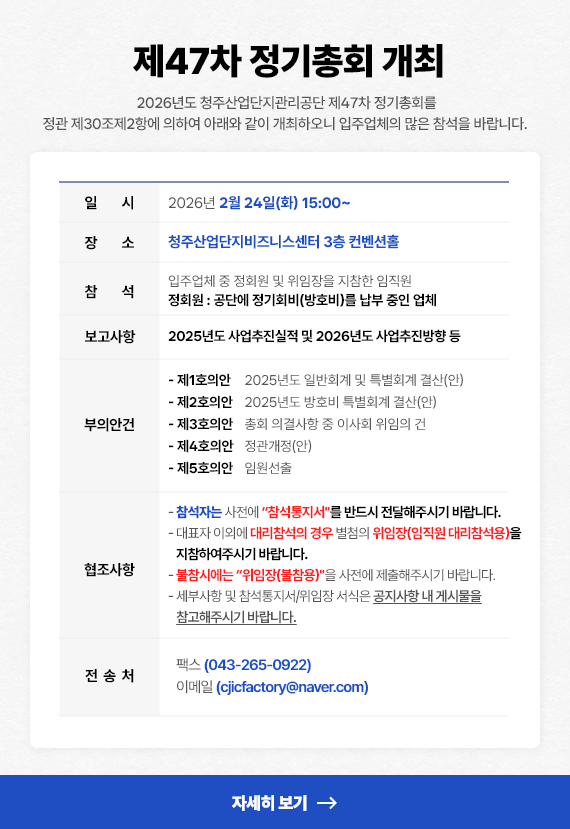(공지) 제47차 청주산업단지관리공단 정기총회 개최 알림