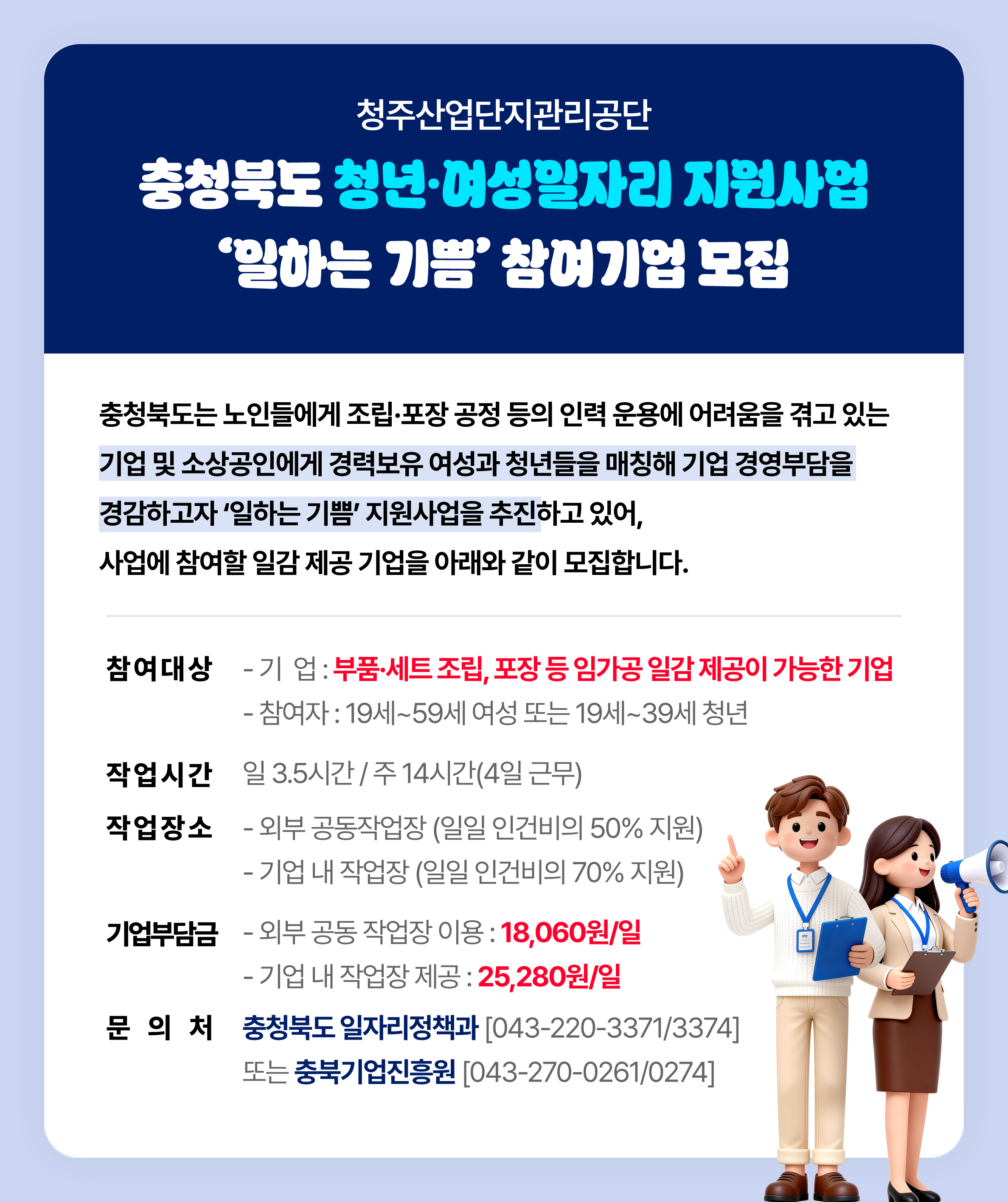 충청북도 ‘일하는 기쁨’ 사업 참여기업 모집 안내