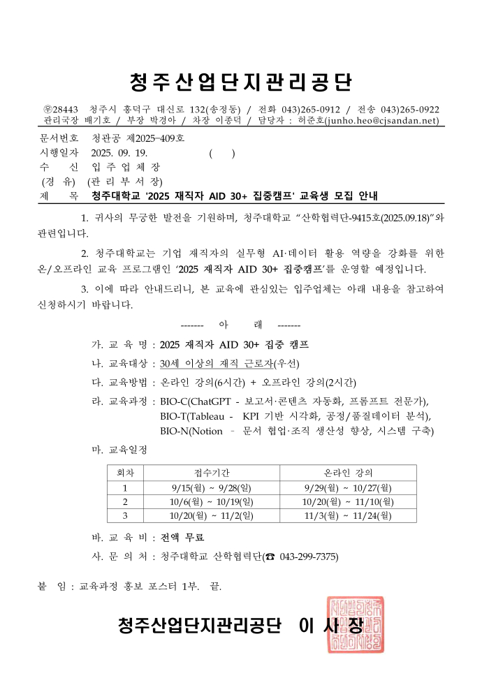 [공문]_청주대학교_2025_재직자_AID_30+_집중캠프_교육생_모집_안내.pdf