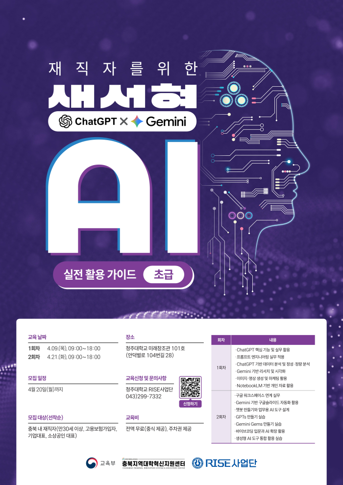 청주대학교 '생성형 AI 무료 교육 프로그램' 교육생 모집 안내