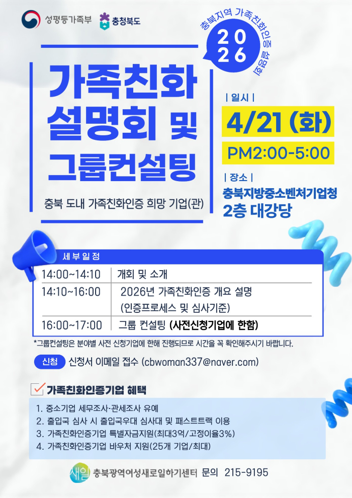 2026년 가족친화인증제도 충북 설명회 개최 안내