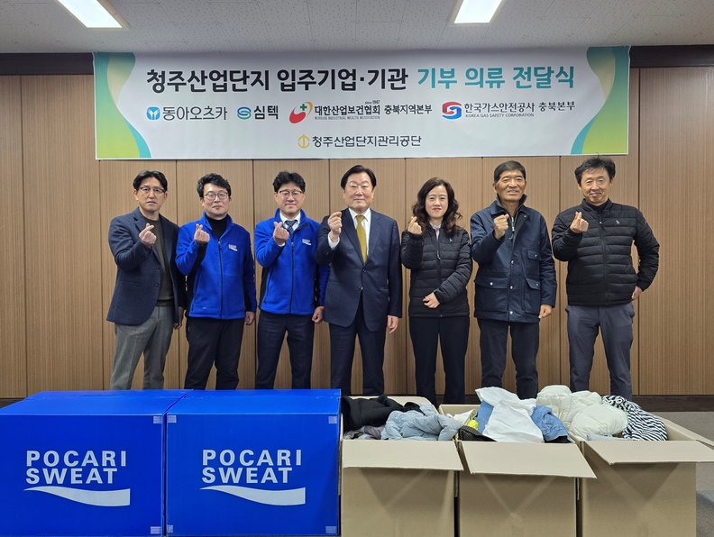 [충북일보] 청주산업단지관리공단은 25일 산단 입주기업인 동아오츠카㈜ 청주공장·㈜심텍과 입주기관 대한산업보건협회·한국가스안전공사 충북본부가 의류 나눔에 동참했다고 밝혔다.